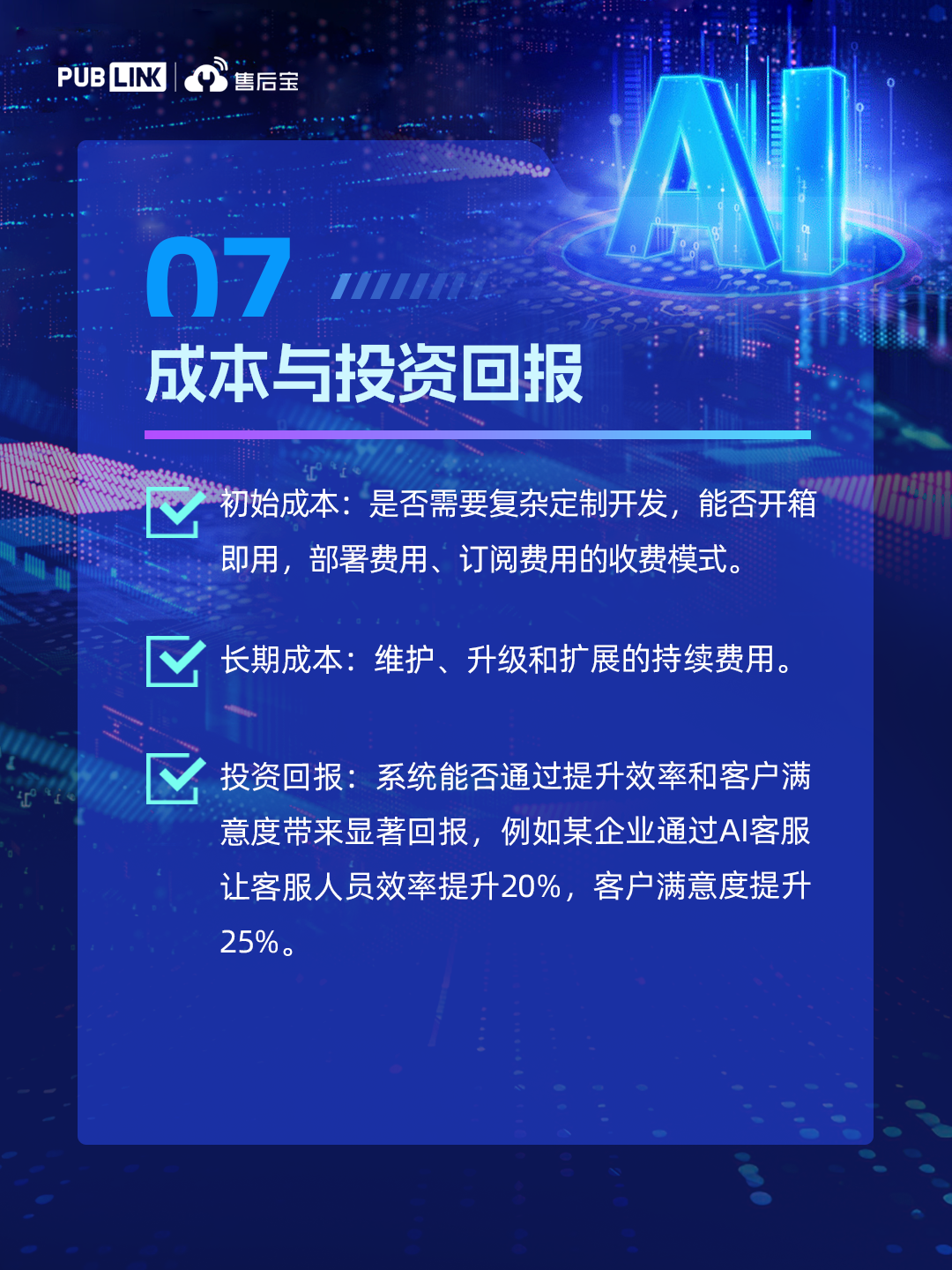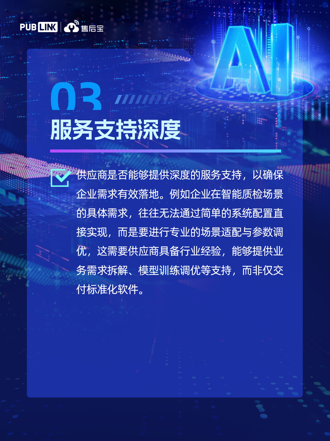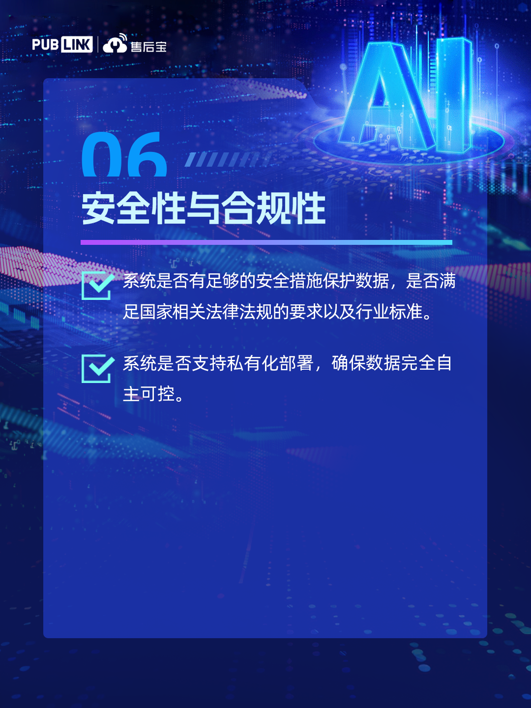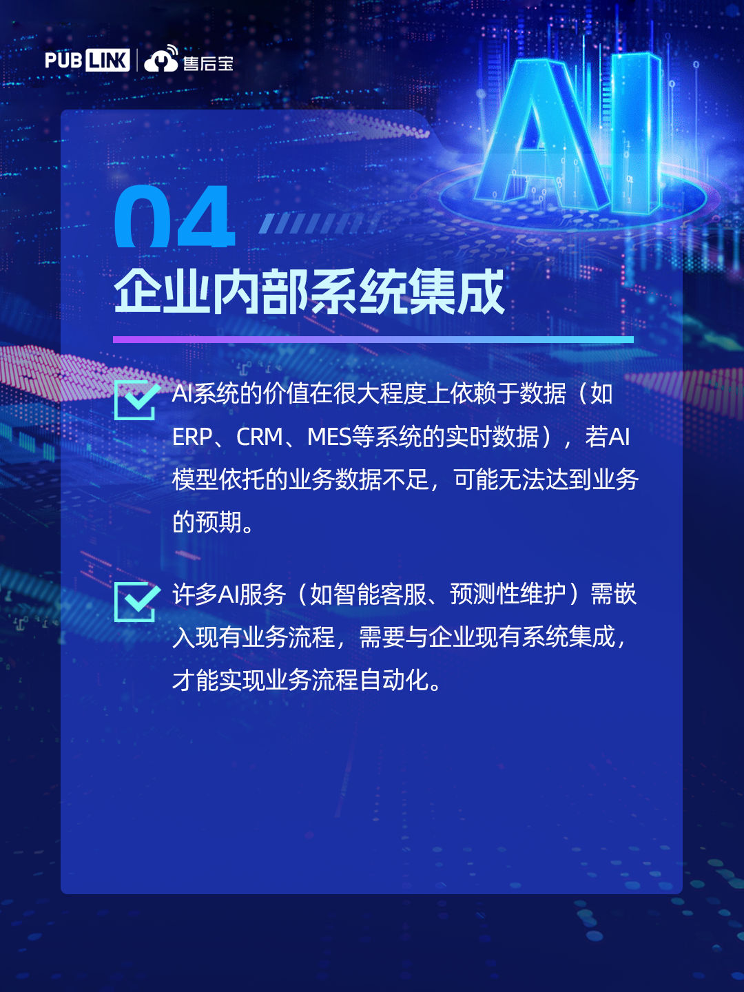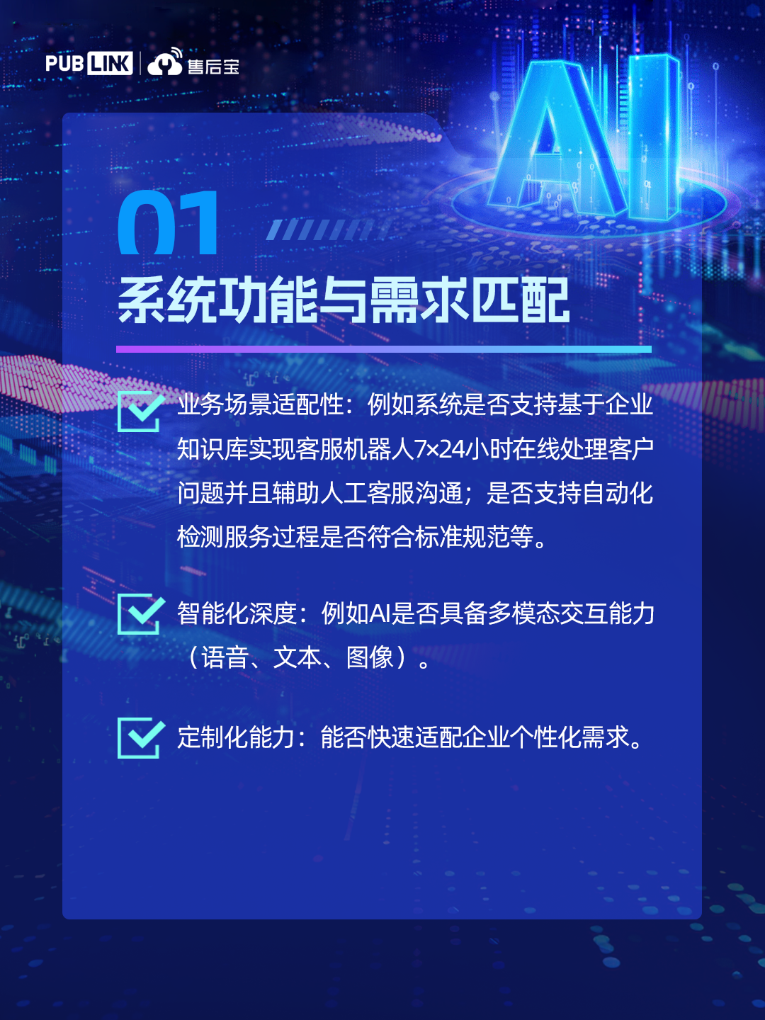 在AI技术飞速发展的今天,企业正经历一场深刻的认知升级:传统的服务系统、业务流程甚至组织架构,正在被AI重新定义。AI不仅改变了工具的效率,更在重塑企业的运营逻辑。这意味着,企业需要重新审视系统的选型标准,注重评估AI的进化能力。基于在装备制造、家居家电、智能硬件、新能源等行业落地AI客户服务系统的实战经验,售后宝提炼出基于AI的服务系统选型时需重点考虑的7大关键要素,助力企业构建AI时代的竞争优势!